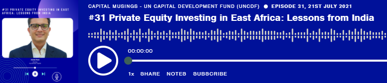 Ashish Patel , Partner, Aavishkaar Capital, Africa delivered a podcast for UNCDF on “Private Equity Investing in East Africa: Lessons from India”